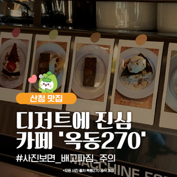 산청 디저트 맛집 추천 케이크부터 커피까지 찐 진심이 느껴지는 카페 옥동270 안녕하세요, 산청군 공식 블로그 지기입니다. 북적북적한 연말이 되면 괜히 예쁘고 맛있는, 특별한 디저트가 생각나잖아요? 오늘은 그런 순간에 딱 어울리는 산청 디저트 맛집, 카페 옥동270을 소개해 드리려고 합니다. 카페 옥동270 경남 산청군 산청읍 꽃봉산로79번길 20 영업시간 : 월–토 11:00 ~ 21:00 (라스트오더 20:30) 정기휴무 : 매주 일요일 “여긴 디저트에 진심이다” 산청 디저트 맛집, 옥동270은 한눈에 봐도 디저트에 공을 들이는 곳이라는 게 느껴집니다. 케이크, 타르트, 쿠키, 와플 등 종류도 다양하고 비주얼부터 눈길을 사로잡아요. .......
